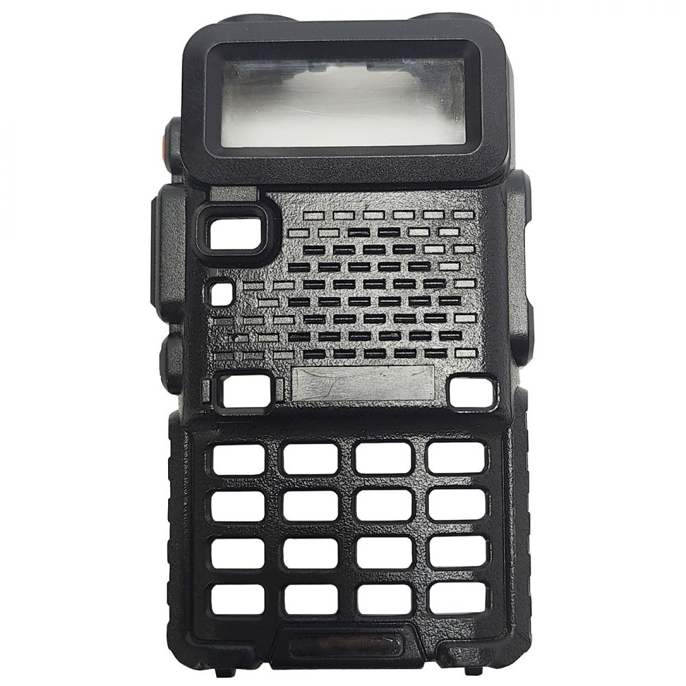Передняя панель корпуса для портативной двухдиапазонной радиостанции Baofeng UV-5R. Цвет: черный. Без клавиатуры. Со стеклом. С динамиком.